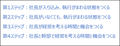 ▼第1ステップ:『社長が入り込み、執行がまわる状態をつくる』